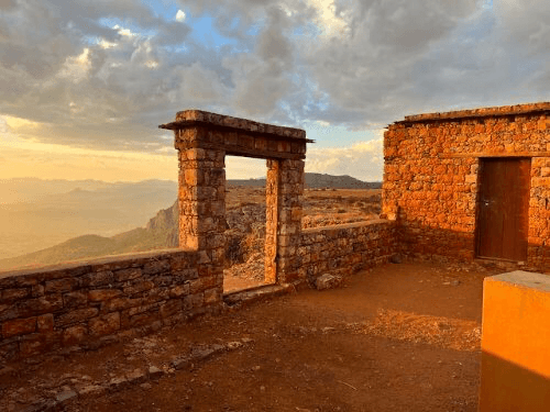 We trekked back up to a village called Rahya, which had always been the trail head for this end of the trek. It’s an easy drive back to Adigrat from whence we headed north to Chehat guesthouse. Its a steep but easy climb into the mountains that flank the city, this time accompanied by two other guides – Biniyam and Fitsum, we reached the brow of the hill where Chehat stands commanding views to the north outlook to the famous monastery of Debre Damo and the Adwa mountains. It was just before sunset and the landscape looked stunning. However the guesthouse, having served as a post for Tigrayan forces was pretty badly damaged. There was no roof left but the walls had been built with cement as the local soil was not good for binding, and so they were still standing. One of the committee, a local priest, had accompanied us up there and informed us that the local cooks we are really keen to start working however the camp manager had been badly beaten and was not at all himself.
