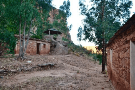 Our first stop was to check out Gohgot guesthouse. It was a beautiful walk through the Seheta valley with the red rock cliffs and the beautiful red stone ‘hedamo‘ farm houses (as the traditional style is called) tucked in amongst eucalyptus trees. It’s a bit of a climb up to the guesthouse which sits on a high bit of land underneath a cliff. We were pleased to find the guesthouse in very good condition and just needing a bit of a clean out. The community came to meet us and again they expressed the wish to receive tourists as soon as possible telling us that was why did they look after the guesthouse and materials. They had an inventory of materials that were missing and materials that were still in store and they have enough to be going on with. From here we headed eastward into the valley behind to search for a church that is inside the cliffs.